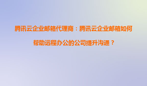 2025-08-27腾讯云企业邮箱代理商:腾讯云企业邮箱如何帮助远程办公的公司提升沟通? 随着远程办公模式的普及,企业对高效、安全的沟通工具需求日益增长。腾讯云企业邮箱作为一款专业的企业级邮件服务,凭借其稳定、安全、...