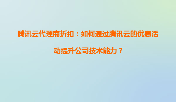 2025-08-27腾讯云代理商折扣:如何通过腾讯云的优惠活动提升公司技术能力? 在数字化转型的浪潮中,云计算已成为企业提升技术能力、优化业务效率的核心工具。腾讯云作为国内领先的云服务提供商,凭借其强大的技术实力和丰...