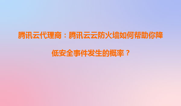 2025-08-27腾讯云代理商:腾讯云云防火墙如何帮助你降低安全事件发生的概率? 引言 在数字化时代,网络安全已成为企业发展的核心议题。随着网络攻击手段的不断升级,企业...