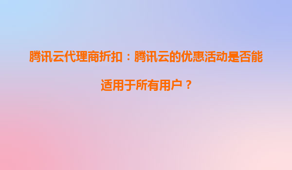 2025-08-26腾讯云代理商折扣:腾讯云的优惠活动是否能适用于所有用户? 引言 随着云计算技术的快速发展,越来越多的企业和个人开始选择云服务来满足其业务需求。腾讯云作为国内领先的云服务提...