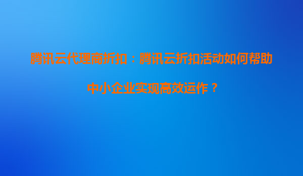 2025-08-26腾讯云代理商折扣:腾讯云折扣活动如何帮助中小企业实现高效运作? 一、中小企业数字化转型的痛点与需求 在数字经济时代,中小企业面临激烈的市场竞争,亟需通过数字化...