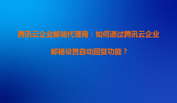 2025-08-26腾讯云企业邮箱代理商指南:如何高效设置自动回复功能 腾讯云企业邮箱的行业优势 作为国内领先的云计算服务商,腾讯云企业邮箱凭借其稳定、安全、高效的特点,成为众多企业的首选。基于腾讯二十余年通信技...