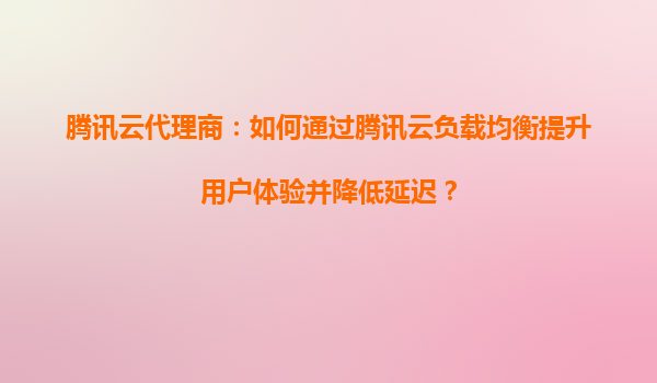 2025-08-26腾讯云代理商:如何通过腾讯云负载均衡提升用户体验并降低延迟 引言:负载均衡的核心价值 在数字化业务快速发展的今天,用户对服务响应速度和稳定性的要求越来越高。作为腾讯云代理商,我们深知负载均衡技...