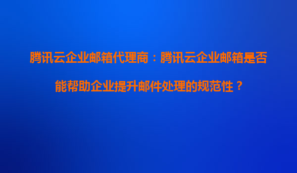 2025-08-25腾讯云企业邮箱代理商:腾讯云企业邮箱是否能帮助企业提升邮件处理的规范性? 在当今数字化办公环境中,企业邮箱不仅是沟通的重要工具,更是企业管理规范性的体现。腾讯云企业邮箱作为国内领先的企业邮箱服务提...
