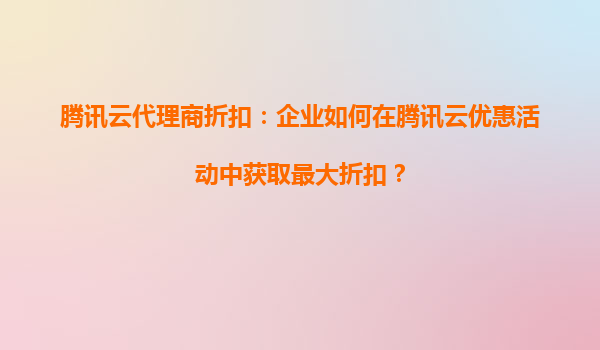 2025-08-24腾讯云代理商折扣:企业如何在腾讯云优惠活动中获取最大折扣? 一、腾讯云官方活动的优势与局限 腾讯云作为国内领先的云计算服务商,定期推出新用户首购、限时秒杀、周年庆等优惠活动,例如:...