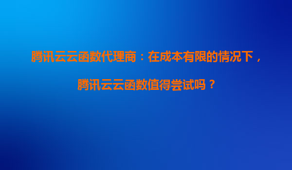 2025-08-24腾讯云云函数代理商:在成本有限的情况下,腾讯云云函数值得尝试吗? 一、腾讯云云函数的核心优势 腾讯云云函数(SCF)作为无服务器计算服务,凭借以下特点成为中小企业及开发者的热门选...