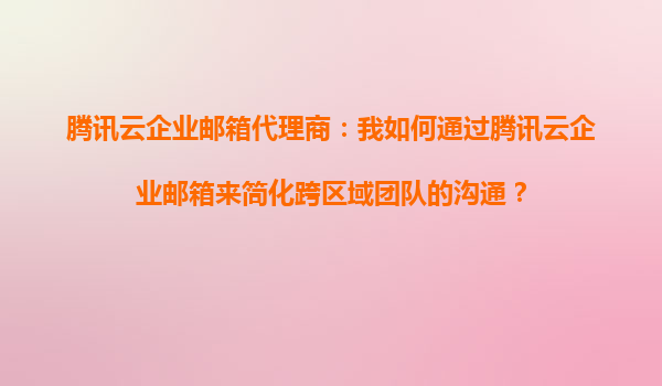 2025-08-24腾讯云企业邮箱代理商:如何通过腾讯云企业邮箱简化跨区域团队沟通? 一、跨区域团队沟通的挑战 在全球化或分布式办公的背景下,企业常面临跨区域协作的难题:...