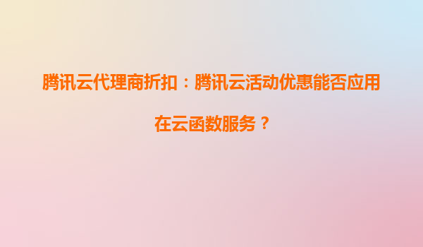 2025-08-24腾讯云代理商折扣与云函数服务的完美结合 腾讯云代理商折扣的灵活应用 腾讯云作为国内领先的云计算服务提供商,其代理商体系为用户提供了多样化的优惠选择。通过官方认证的代理商渠道,用户可享受包括新购...