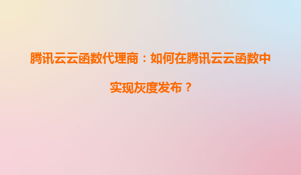 腾讯云云函数代理商:如何在腾讯云云函数中实现灰度发布? 一、灰度发布的核心价值 灰度发布(GrayRelease)是一种渐进式部署策略,允许开发者将新版本功能逐...