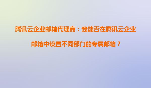 2025-08-24腾讯云企业邮箱代理商:部门专属邮箱设置指南 一、腾讯云企业邮箱的核心优势 腾讯云企业邮箱作为国内领先的企业级邮件服务,凭借以下优势成为众多企业的首选: 高可靠性:基于腾讯云...