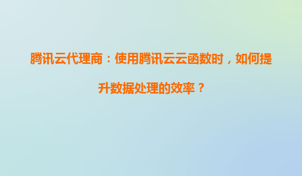 2025-08-23腾讯云代理商:使用腾讯云云函数时,如何提升数据处理的效率? 引言 在当今数字化时代,数据处理效率直接影响企业的业务响应速度和竞争力。腾讯云云函数(ServerlessCloudFunction,SCF)作为一种无服务...