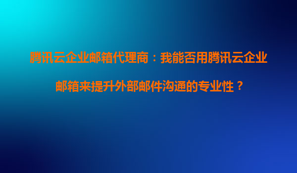 腾讯云企业邮箱代理商:我能否用腾讯云企业邮箱来提升外部邮件沟通的专业性? 一、腾讯云企业邮箱的核心优势 腾讯云企业邮箱作为一款基于云计算的企业级邮件服务,具备以下核心优势: 高可靠...