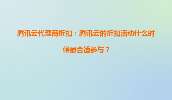 2025-08-23腾讯云代理商折扣:腾讯云折扣活动能覆盖哪些云产品? 一、腾讯云代理商折扣活动概述 腾讯云作为国内领先的云计算服务提供商,通过代理商渠道为用户提供多样化的折扣活动。这些活动旨在降低企业上云成本,...