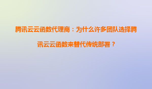 2025-08-23腾讯云云函数代理商:为什么许多团队选择腾讯云云函数来替代传统部署? 引言 随着云计算技术的快速发展,Serverless架构逐渐成为企业数字化转型的重要选择。腾...