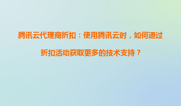 2025-08-23腾讯云代理商折扣:使用腾讯云时,如何通过折扣活动获取更多的技术支持? 一、腾讯云的核心优势与技术支持价值 腾讯云作为国内领先的云计算服务商,凭借其强大的基础设施、丰富的产品矩阵和稳定的服务能力...