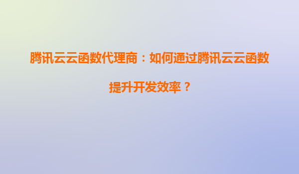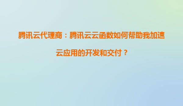 2025-08-23腾讯云代理商:腾讯云云函数如何帮助我加速云应用的开发和交付? 引言 在当今快速发展的数字化时代,企业需要更高效、更灵活的方式来开发和交付云应用。腾讯云云函数(ServerlessCloud...