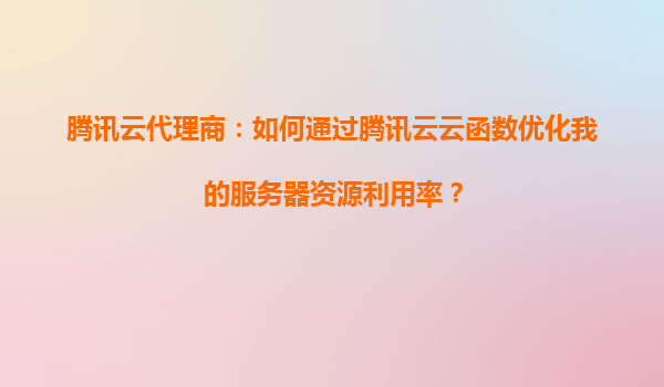 2025-08-23腾讯云代理商:如何通过腾讯云云函数优化我的服务器资源利用率? 引言 在当今数字化时代,企业对于服务器资源的需求日益增长,但传统的服务器架构往往存在资源利用率低、成本高、维护复杂等问题。腾讯云作为国...