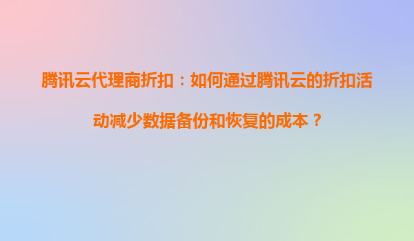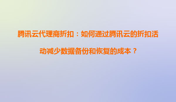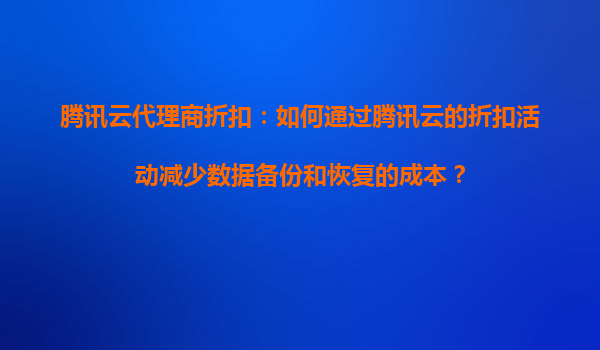 腾讯云代理商折扣:如何通过腾讯云的折扣活动减少数据备份和恢复的成本? 在当今数字化时代,数据已成为企业最宝贵的资产之一。无论是业务数据、客户信息还是系统日志,数据的备份和恢复都是企业IT运维中...
