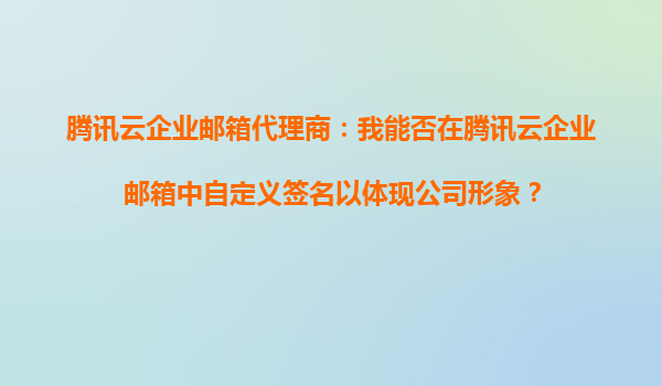 2025-08-23腾讯云企业邮箱代理商:我能否在腾讯云企业邮箱中自定义签名以体现公司形象? 一、腾讯云企业邮箱的签名自定义功能 腾讯云企业邮箱作为一款专业的企业级邮箱服务,提供了丰富的个性化设置功能,其中就包括...