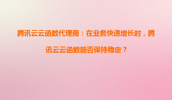 2025-08-23腾讯云云函数代理商:在业务快速增长时,腾讯云云函数能否保持稳定? 引言 在数字化转型的浪潮中,企业对于云计算的需求日益增长,尤其是无服务器计算(Serverl...