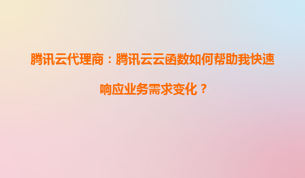 2025-08-22腾讯云代理商:腾讯云云函数如何帮助我快速响应业务需求变化? 引言:业务敏捷性的挑战与机遇 在数字化时代,企业业务需求的变化速度远超传统IT架构的响应能力...
