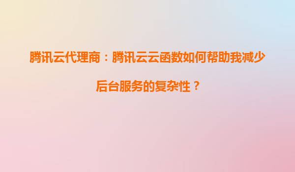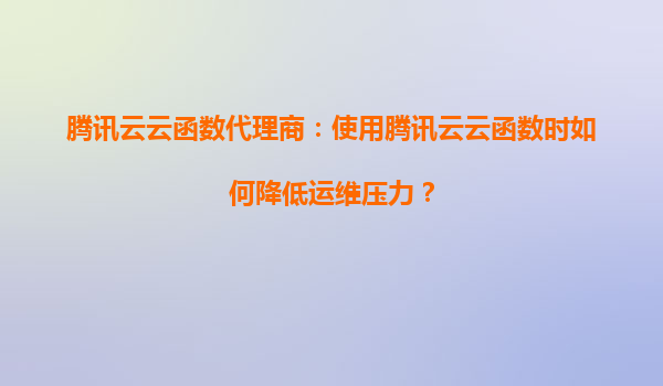 2025-08-22腾讯云云函数代理商:使用腾讯云云函数时如何降低运维压力? 引言 在当今快速发展的云计算时代,企业对于高效、灵活的IT基础设施需求日益增长。腾讯云云函数(S...