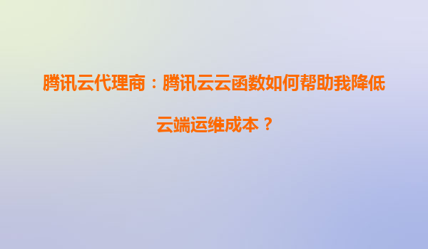 2025-08-22腾讯云代理商:腾讯云云函数如何帮助我降低云端运维成本? 为什么选择腾讯云云函数? 在数字化转型的浪潮中,企业越来越依赖云端服务来构建灵活、高效的业务系统。然而...
