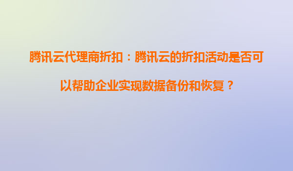 2025-08-22腾讯云代理商折扣:腾讯云的折扣活动是否可以帮助企业实现数据备份和恢复? 一、腾讯云的优势与数据备份恢复的关联 腾讯云作为国内领先的云计算服务提供商,凭借其强大的技术实力和丰富的产品矩阵,为...