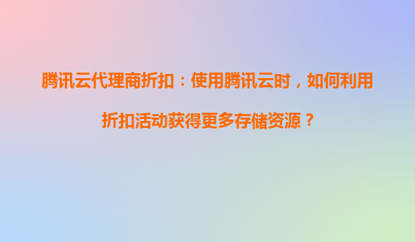 2025-08-22腾讯云代理商折扣:使用腾讯云时,如何利用折扣活动获得更多存储资源? 一、腾讯云存储资源的优势 腾讯云作为国内领先的云计算服务商,其存储服务(如对象存储COS、文件存储CFS等)具备以下核心优...