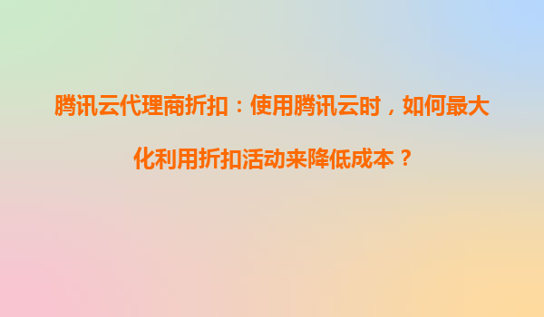 2025-08-22腾讯云代理商折扣:使用腾讯云时,如何最大化利用折扣活动来降低成本? 一、了解腾讯云代理商折扣的核心优势 腾讯云作为国内领先的云服务提供商,其代理商体系为用户提供了丰富的折扣活动,这些优势主要体...