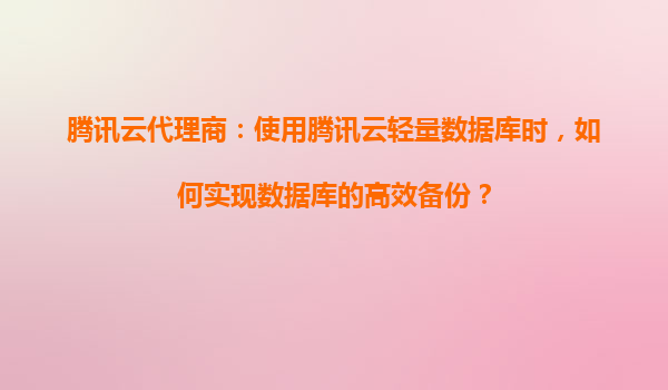 2025-08-21腾讯云代理商:使用腾讯云轻量数据库时,如何实现数据库的高效备份? 数据备份是保障企业业务连续性和数据安全性的关键环节。对于选择腾讯云轻量数据库的用户来说,如何高效完成备份任务并充分利用腾讯云...