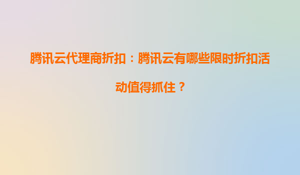 2025-08-21腾讯云代理商折扣:腾讯云有哪些限时折扣活动值得抓住? 一、腾讯云的核心优势 在探讨限时折扣活动之前,首先要了解腾讯云为何能成为众多企业的首选云服务提供商。腾讯云凭借以下核心优势,吸引了大量...