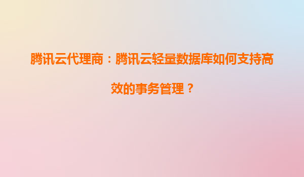 2025-08-21腾讯云代理商:腾讯云轻量数据库如何支持高效的事务管理? 一、轻量数据库的高效事务管理核心能力 腾讯云轻量数据库(TencentDBLight)是一款面向中小企业的全...
