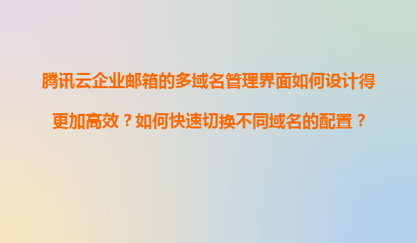 2025-11-08腾讯云企业邮箱多域名管理界面的高效设计思路 腾讯云企业邮箱作为国内领先的企业级邮件服务解决方案,其多域名管理功能在大型企业和集团客户中具有显著需求。通过优化界面设计和操作流程,可大幅提升管理员的工作效...