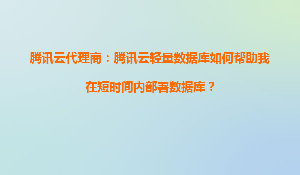 2025-08-20腾讯云代理商:腾讯云轻量数据库如何帮助我在短时间内部署数据库? 在数字化转型和业务快速发展的背景下,数据库的快速部署和高效管理成为企业关注的重点。作为国内领先的云计算服务商,腾讯云推出的轻量...