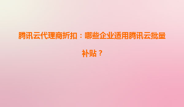 2025-08-20腾讯云代理商折扣:哪些企业适用腾讯云批量补贴? 一、腾讯云的优势概览 腾讯云作为国内领先的云计算服务提供商,凭借其强大的技术实力和丰富的行业经验,为企业用户提供了稳定、高效、安全的云服务解决方...