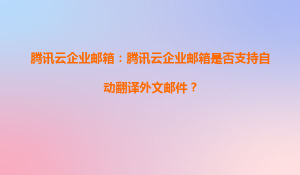 2025-08-19腾讯云企业邮箱:国际化办公的高效助手,是否支持自动翻译外文邮件? 一、腾讯云企业邮箱的核心优势 腾讯云企业邮箱作为一款面向现代企业的专业邮件服务,凭借腾讯集团强大的技术...