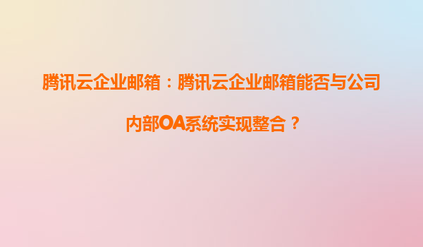 2025-08-18腾讯云企业邮箱:高效整合公司内部OA系统的解决方案 一、腾讯云企业邮箱的核心优势 腾讯云企业邮箱作为国内领先的企业级邮箱服务,凭借腾讯生态的技术积累,在安全性、稳定性和扩展性上具备显...