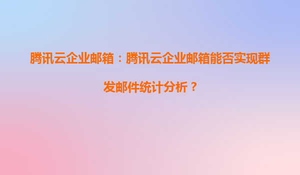 2025-08-18腾讯云企业邮箱:腾讯云企业邮箱能否实现群发邮件统计分析? 一、腾讯云企业邮箱的群发邮件功能概述 腾讯云企业邮箱作为一款面向企业用户的高效沟通工具,提供了强大的群发邮件功能。企业可以通过...