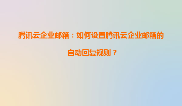 2025-08-17腾讯云企业邮箱自动回复规则设置指南 腾讯云企业邮箱的智能化管理价值 腾讯云企业邮箱作为国内领先的企业级邮件服务,不仅提供稳定的收发信功能,更通过自动回复等智能规则显著提升沟通效率...