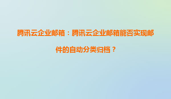 2025-08-17腾讯云企业邮箱:腾讯云企业邮箱能否实现邮件的自动分类归档? 一、腾讯云企业邮箱概述 腾讯云企业邮箱是基于腾讯多年技术积累推出的企业级邮件服务,不仅提供稳定的邮件收发功能,还整合了腾讯云强大...