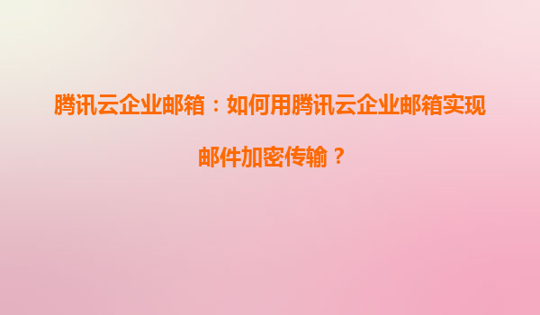 2025-08-17腾讯云企业邮箱:如何实现邮件加密传输 邮件安全的重要性 在数字化时代,企业邮件的安全性至关重要。邮件中可能包含商业机密、客户信息或财务数据,一旦泄露或篡改,将对企业造成不可估量...