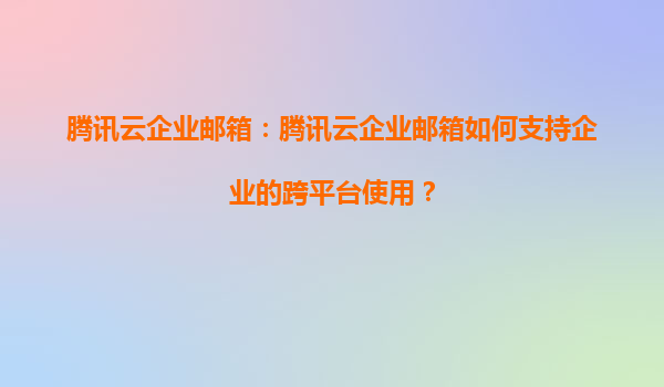2025-08-16腾讯云企业邮箱:如何支持企业的跨平台使用? 1.腾讯云企业邮箱的跨平台适应能力 随着企业信息化建设的深入,办公场景日益多元化,员工可能需要在不同的设备和操作系统上处理工作邮件。腾讯云企业邮箱凭借其强...