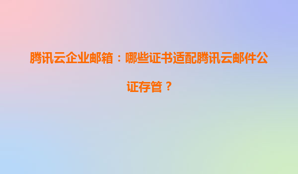 腾讯云企业邮箱:适配腾讯云邮件公证存管的安全证书解析 一、腾讯云邮件公证存管简介 腾讯云邮件公证存管是专为企业提供的邮件存证服务,通过区块链、时间戳等技术确保邮件的真实性、完...