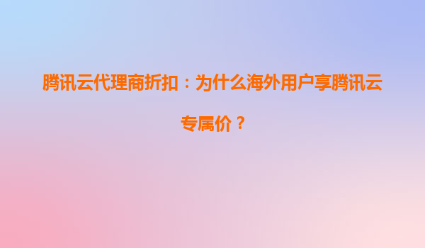 2025-08-14腾讯云代理商折扣:为什么海外用户享腾讯云专属价? 一、腾讯云的全球化布局与竞争优势 腾讯云作为中国领先的云计算服务提供商,近年来加速全球化战略布局,已在全球五大洲(亚洲、欧洲、北美、南...