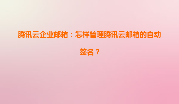 腾讯云企业邮箱自动签名功能详解 什么是自动签名功能 腾讯云企业邮箱的自动签名功能,允许用户在发送邮件时自动在邮件末尾添加预设的签名内容。这项功能不仅支持文字签名,还可以插入图片、超链接等元素,满足...