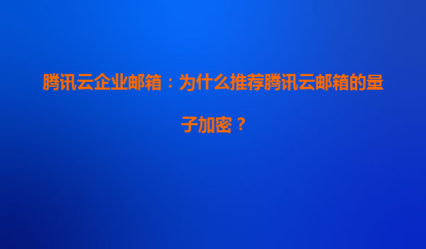 2025-08-12腾讯云企业邮箱:为什么推荐量子加密技术? 引言:企业邮箱安全的重要性 在数字化时代,企业邮箱不仅是内部沟通的桥梁,更是商务合作的核心工具。然而,随着网络攻击手段的升级,传统加...