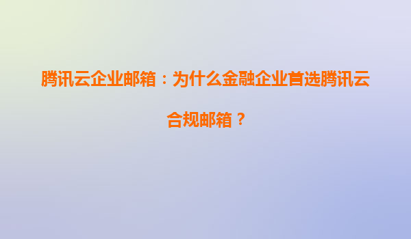 2025-08-09腾讯云企业邮箱:为什么金融企业首选腾讯云合规邮箱? 一、金融行业的特殊需求与合规挑战 金融行业对数据安全、隐私保护和合规性要求极为严格。企业邮箱作为日...