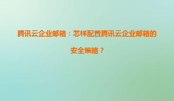 2025-08-08腾讯云企业邮箱:如何配置安全策略及优势解析 一、腾讯云企业邮箱安全策略的重要性 在数字化办公时代,企业邮箱作为核心通信工具,承载着大量敏感信息。腾讯云企业邮箱凭借其强大的安全防护能力,成为众多...