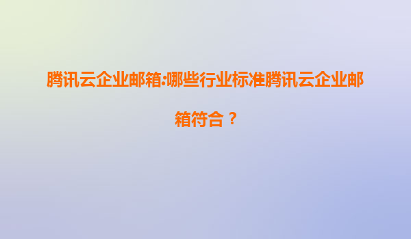 2025-08-02腾讯云企业邮箱:符合哪些行业标准及其核心优势解析 一、腾讯云企业邮箱概述 腾讯云企业邮箱是基于云计算技术打造的专业邮件服务,为企业提供高效、安全、稳定的通信解决方案。依托腾讯集团的技术积累和生...